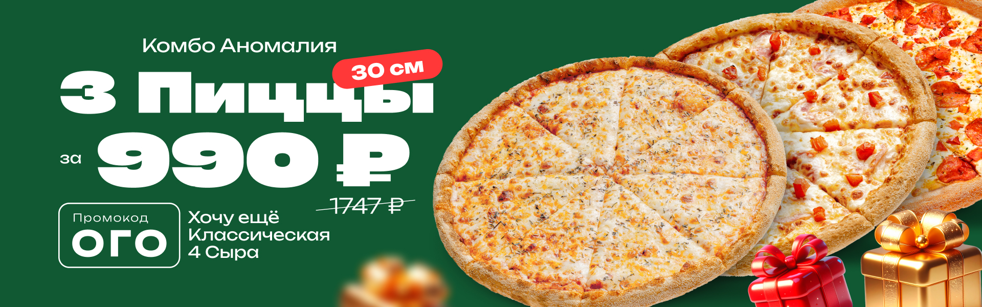 Три мощных пиццы 30см со скидкой БОЛЕЕ 40%!