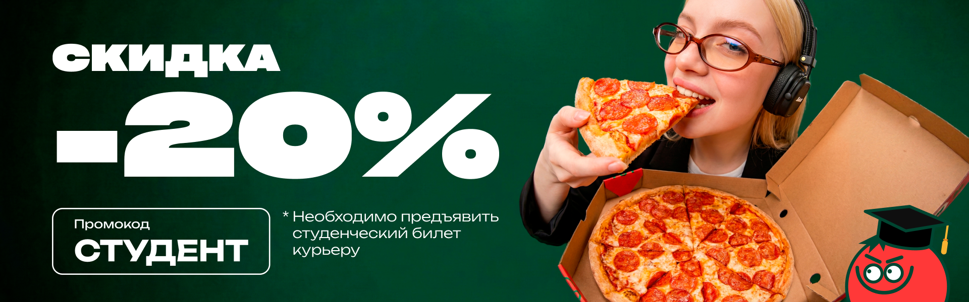 Добавляй любимые пиццы в корзину и вводи промокод: СТУДЕНТ